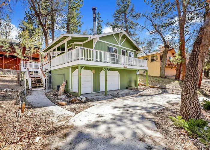 The 2-bedroom Good Times #1295 Villa, located 25 minutes on foot from the large Big Bear Alpine Zoo, invites guests to relax in a Jacuzzi.